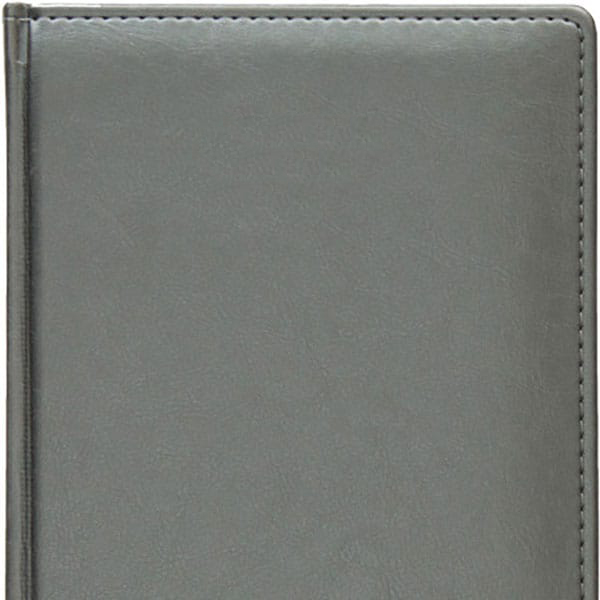 Ekoskóra Nebraska to okleina z satynowym, glansowanym połyskiem i unikalną fakturą wypolerowanej skóry. Okładka ma zaokrąglone rogi i jest przeszyta nićmi (to nie imitacja przeszycia jak w większości tanich kalendarzy).